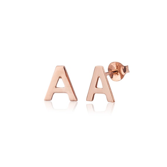 Letter a gold earrings clearance, Little Letter Alphabet Earring Gold Rose Or Silver Dip By Florence London clearance