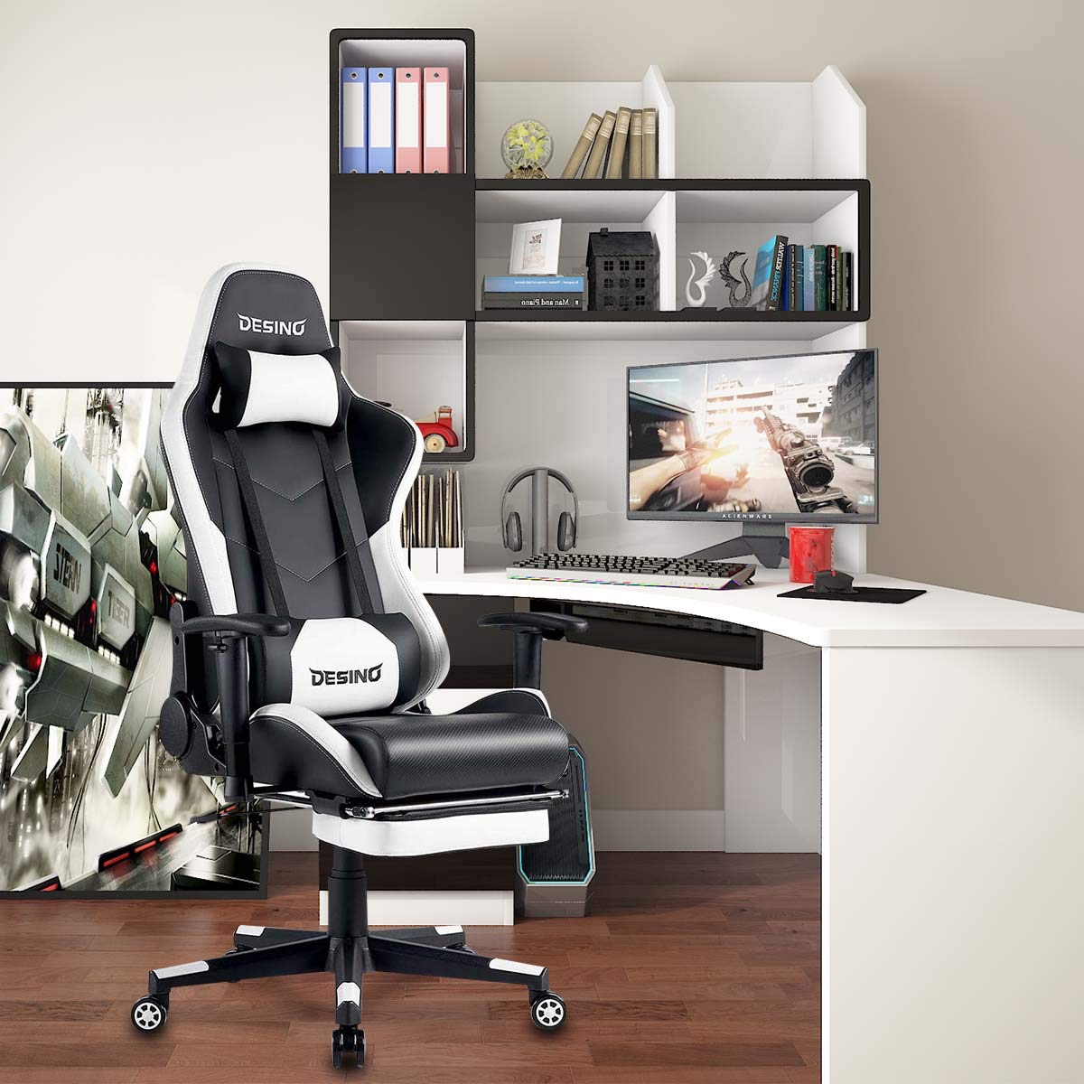 - Hironpal gaming chair with footrest clearance