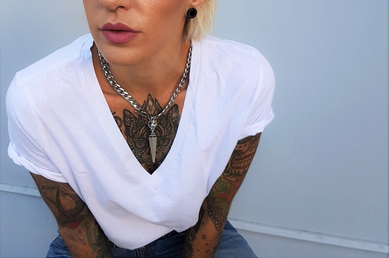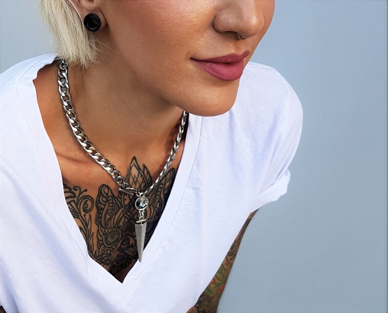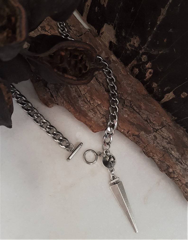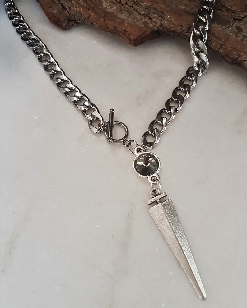 Cuban link swarovski clearance, Dark Silver Large Cuban Link Swarovski Spike Necklace Bold | Etsy clearance