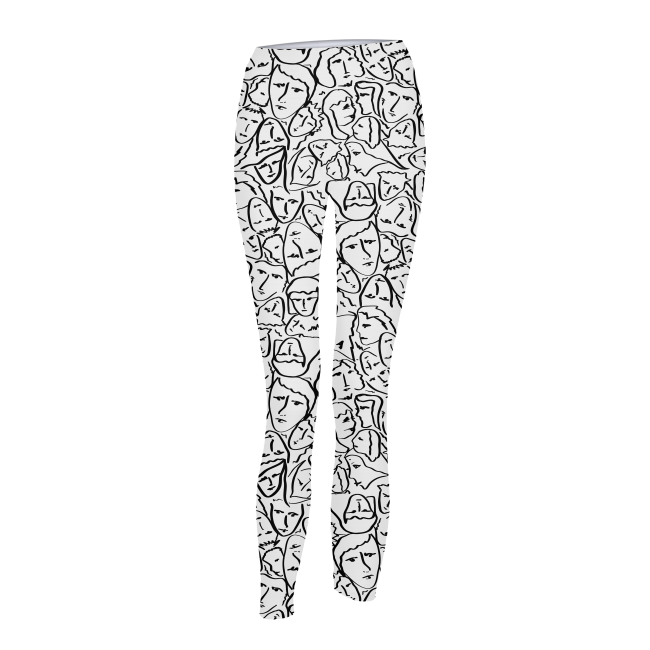 - Black and white pants with faces on them
