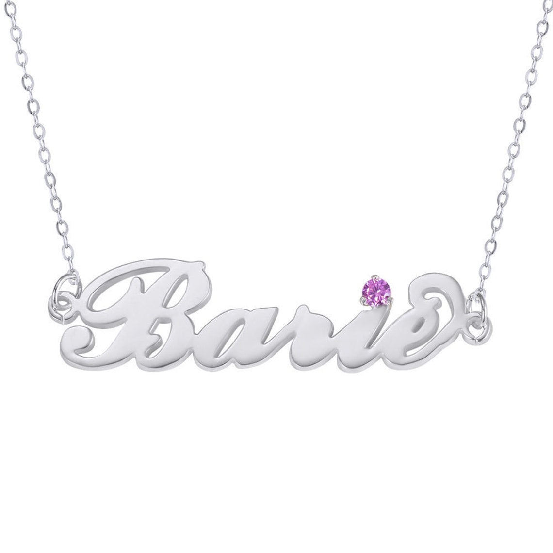 - Silver name necklace with birthstone free shipping