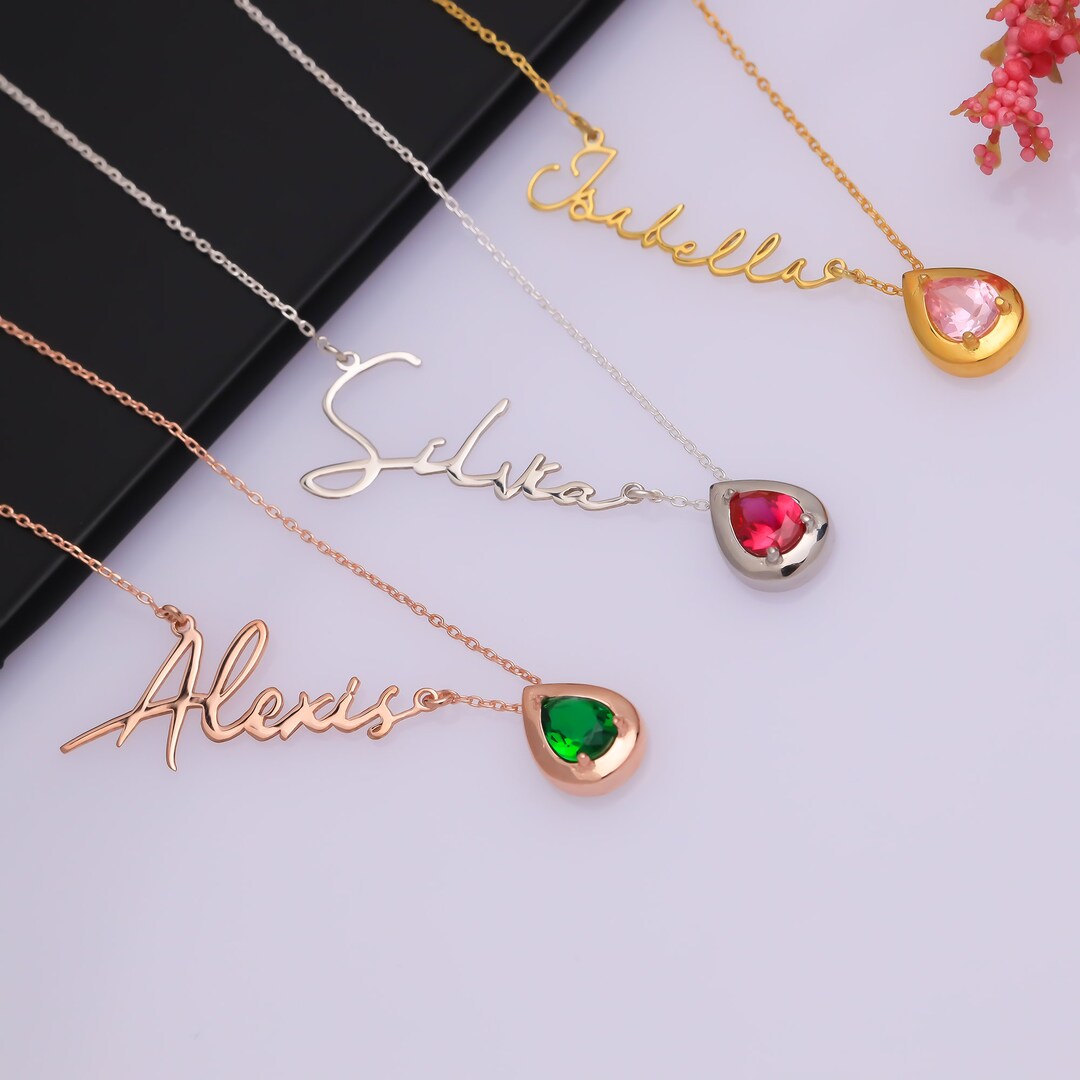 - Silver name necklace with birthstone shop