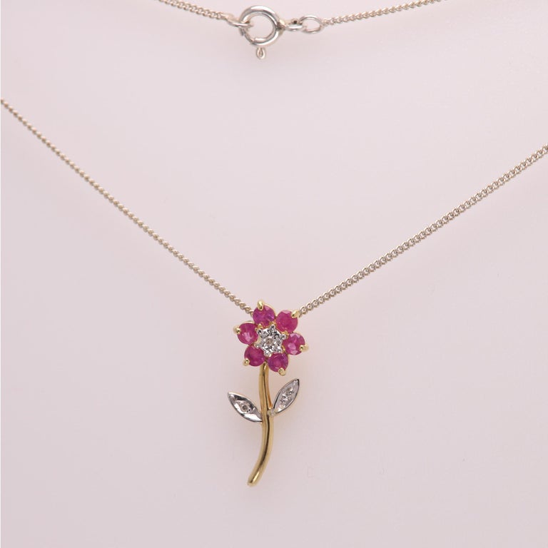 Real gold flower necklace clearance, Cute Gold Flower Pendant Real Gemstones and Diamonds Solid 14 Karat Gold For Sale at 1stDibs clearance