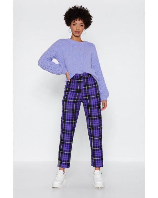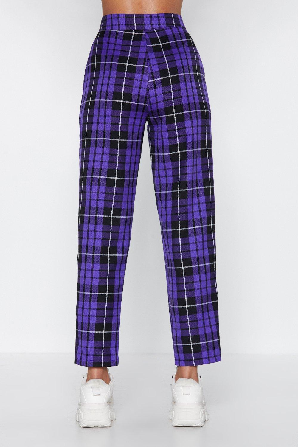Purple plaid trousers clearance, check Up Time Plaid Pants clearance