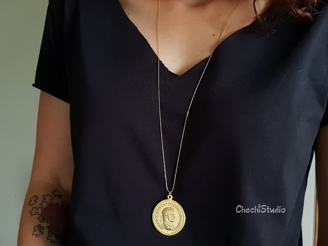 - Long medallion necklace sale online