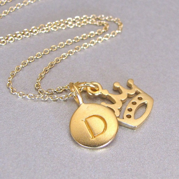 Initial necklace with crown clearance, Crown Initials Necklace Gold Monogram Princess Queen Letter | Etsy clearance