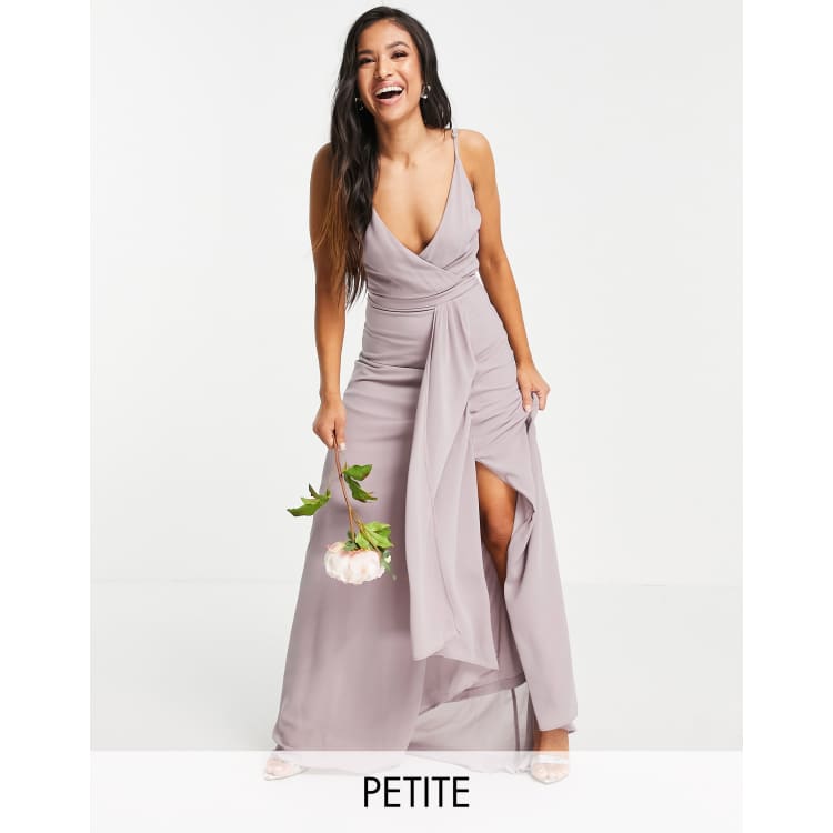 Tfnc bridesmaid exclusive cami wrap maxi dress with fishtail in grey clearance, TFNC Petite Bridesmaid cami wrap maxi dress with fishtail in light gray | ASOS clearance