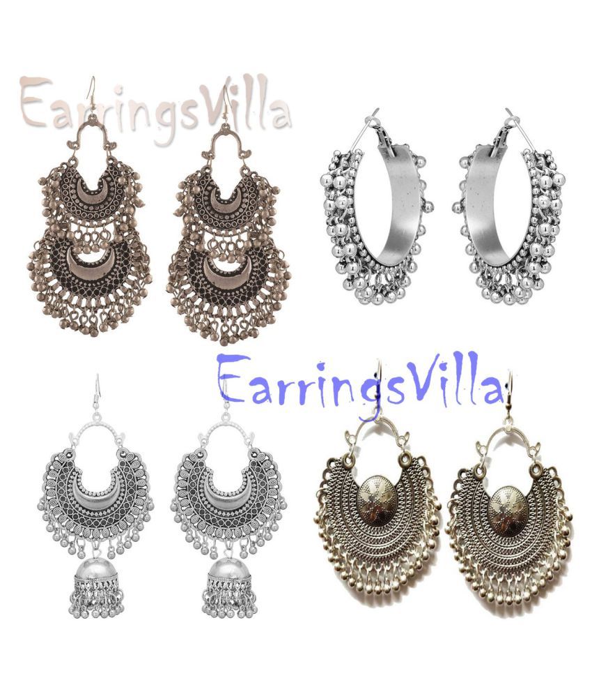 Trendy oxidised earrings clearance, Trendy Oxidised stone earrings with jhumki Earrings Combo New Arrival Silver Fashion Jewellery clearance