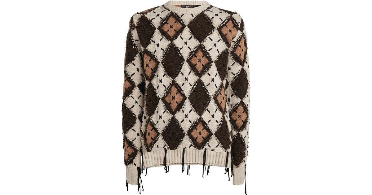 White amiri sweater clearance, Amiri Wool Argyle Plaid Knit Sweater in White for Men - Lyst clearance