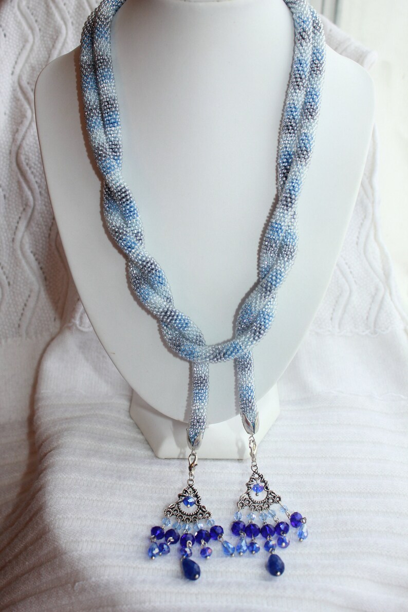 Beaded lariat necklace clearance, Bead Long Lariat Necklace for women/ Blue Beaded Necklace/ | Etsy clearance