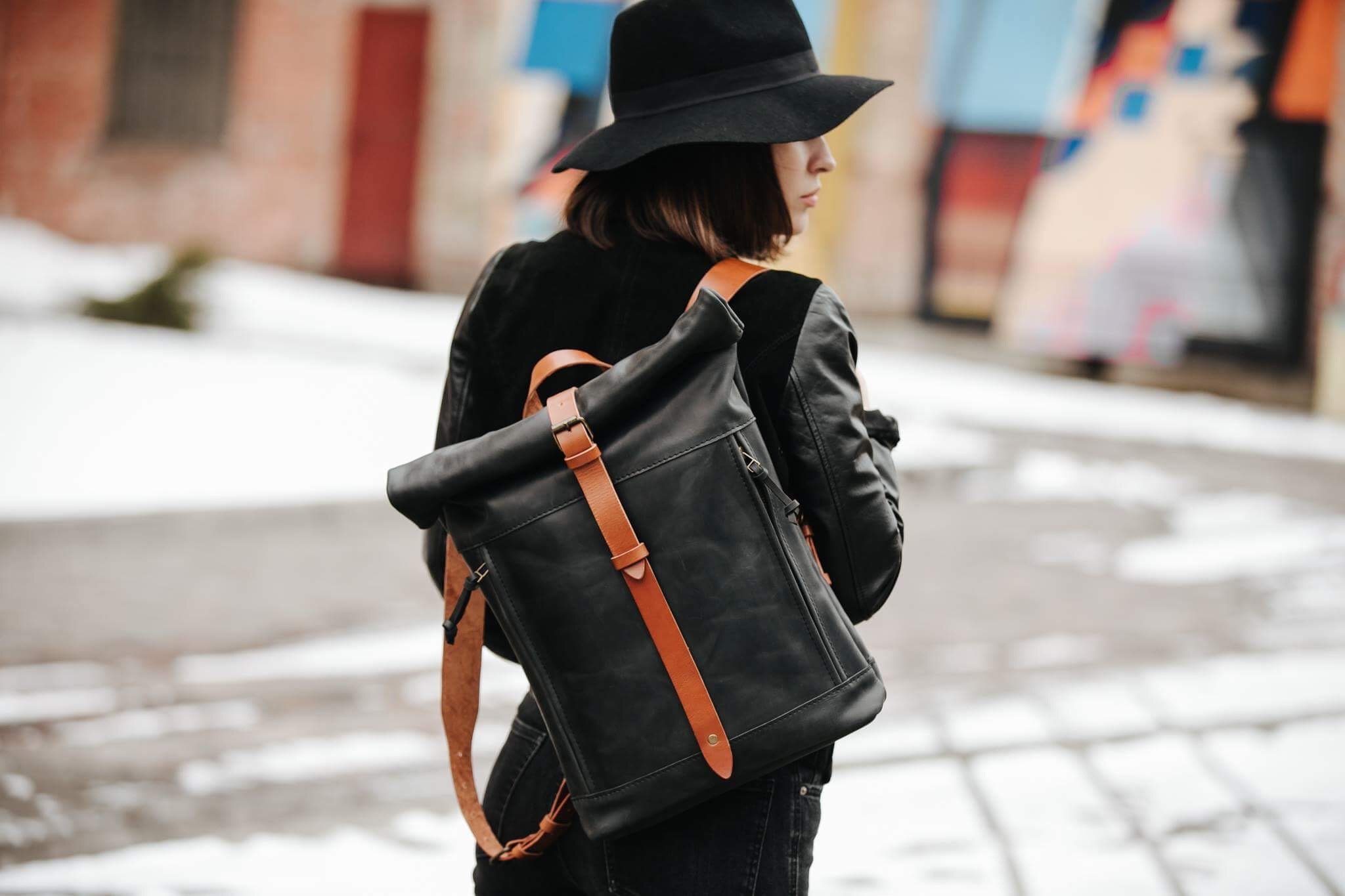 Roll top backpack singapore clearance, Leather Backpack Man TWILL LINING clearance