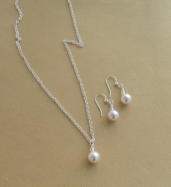 Simple pearl jewellery sets clearance, Sterling silver Bridal Pearl And Crystal Necklace,Bridesmaid Necklace, Bridal Jewelry, Pearl clearance