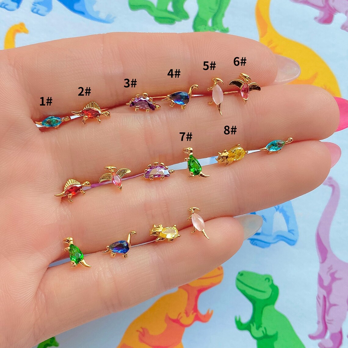- Gold dinosaur earrings free shipping