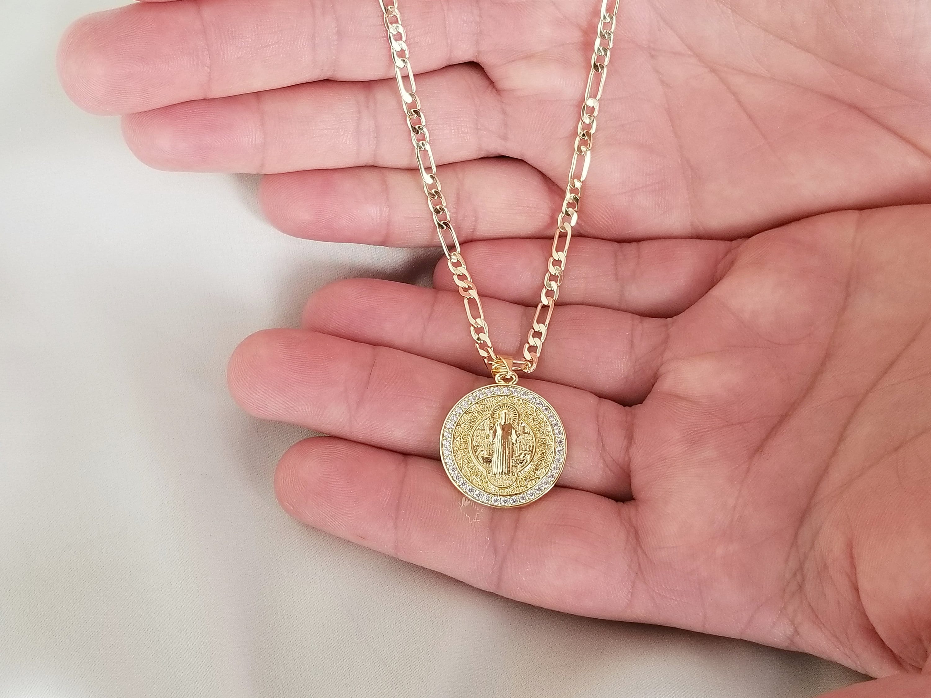 Gold chain for boyfriend clearance, 18k Gold Medallion Pendant Chain Mens Necklace Gold Saint | Etsy clearance