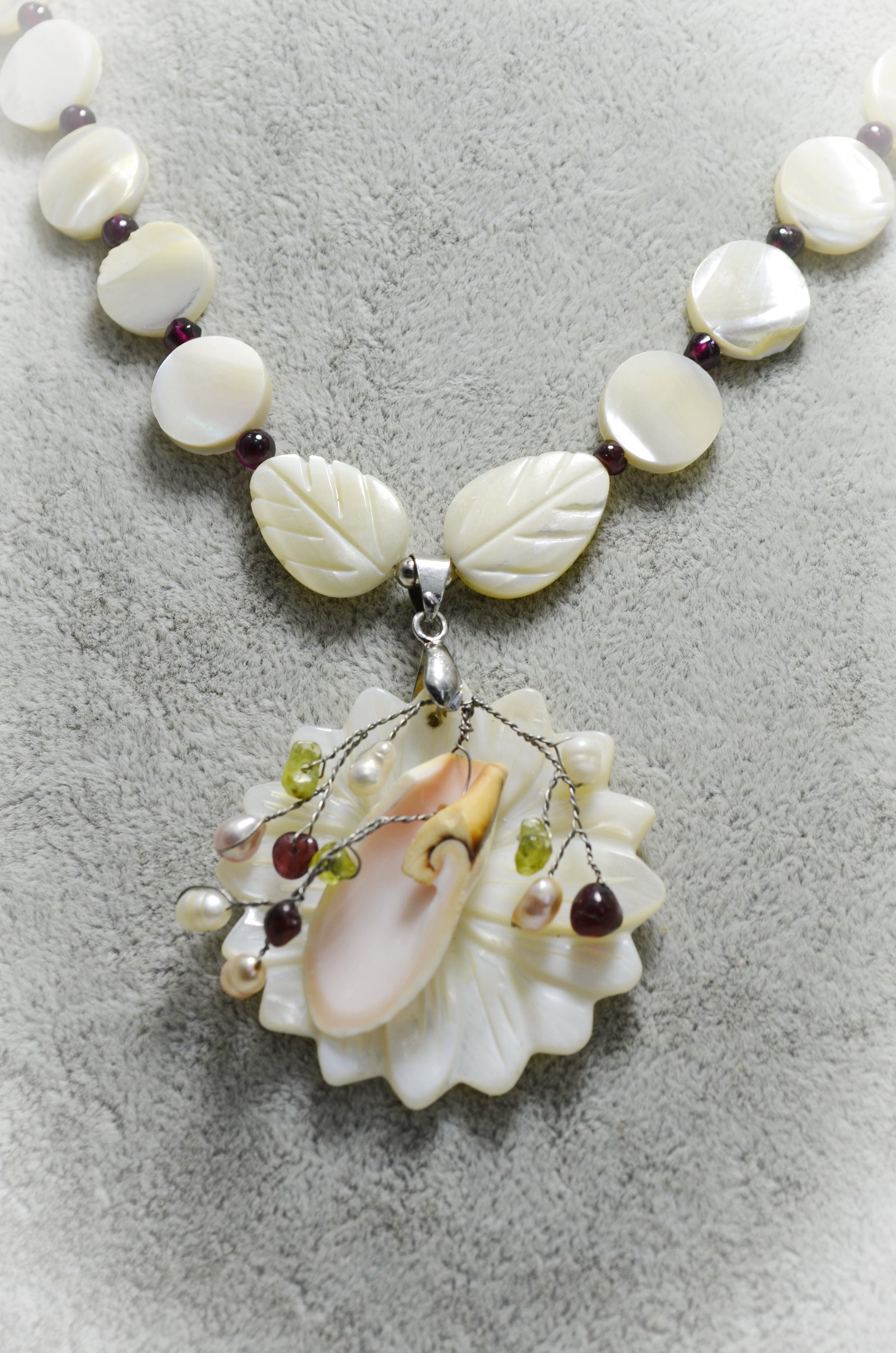 - Pearl necklace with shell pendant