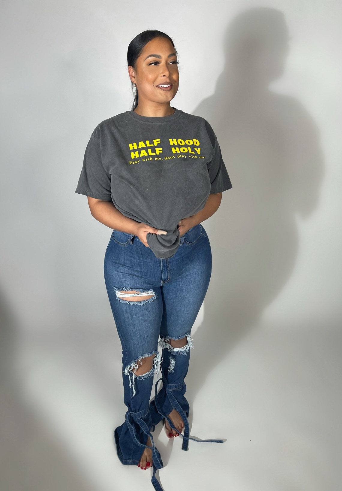 Half hooded t shirt clearance, Oversized Half Hood Half Holy T-shirt | Etsy clearance