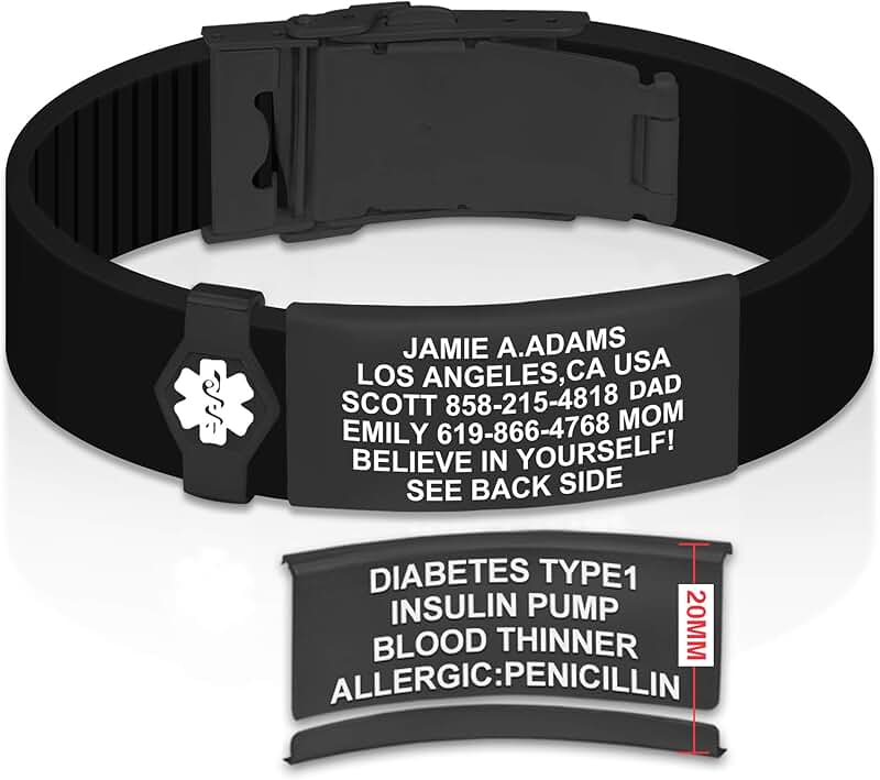 Emergency call bracelet clearance, Personalized Emergency Medical Alert Adjustable Silicone Waterproof Band Bracelet with Stainless clearance