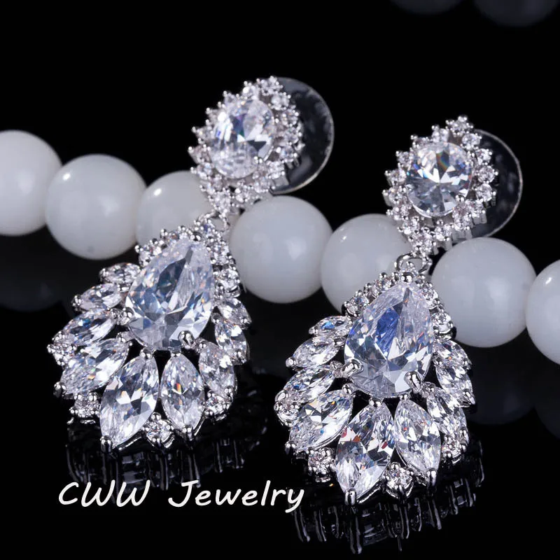 Long diamond earrings wedding clearance, zirconia bride long earring diamond wedding jewelry 2019 clearance
