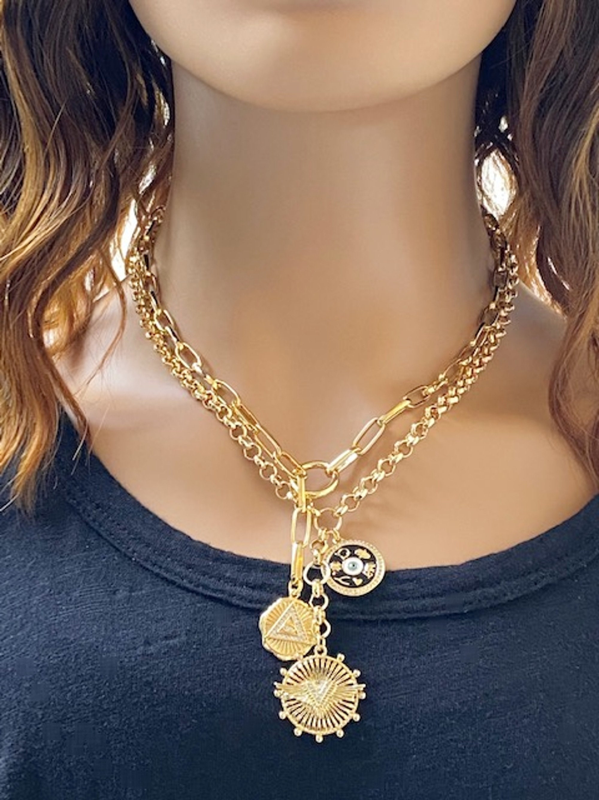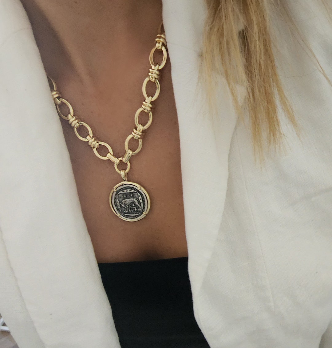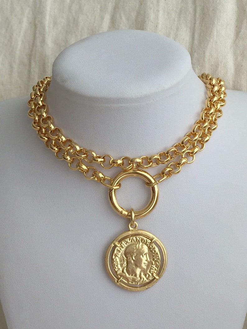 Chunky gold coin necklace clearance, Chunky Gold Necklace Gold Coin Necklace Large Coin Necklace - Etsy clearance