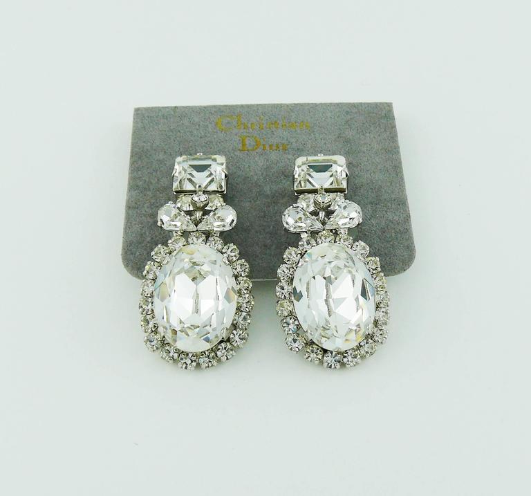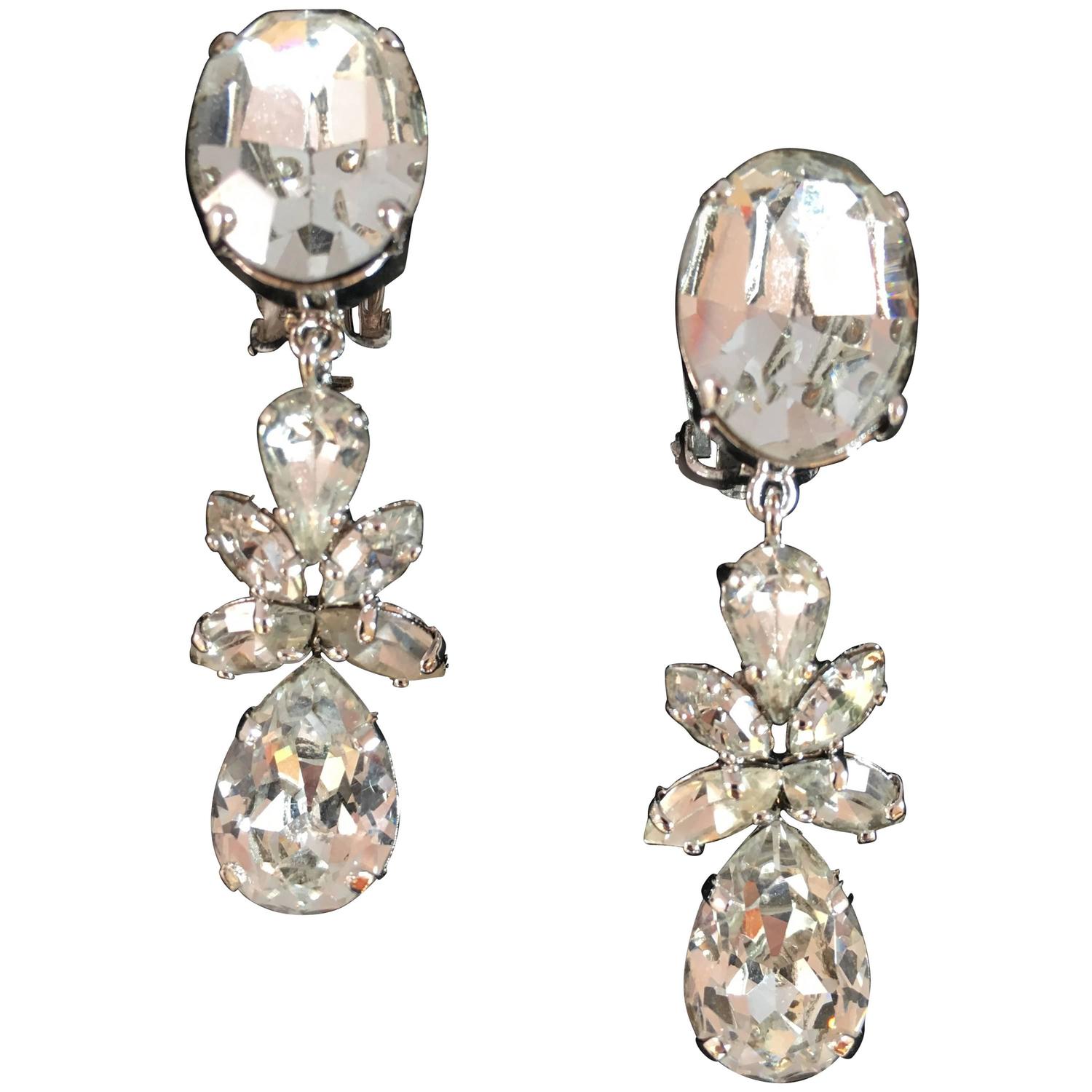 Christian dior diamond earrings clearance, Christian Dior Vintage Dangling Clip On Diamante Earrings at 1stdibs clearance
