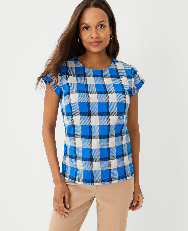 Best cap sleeve t shirt clearance, Plaid Cap Sleeve Top | Ann Taylor clearance