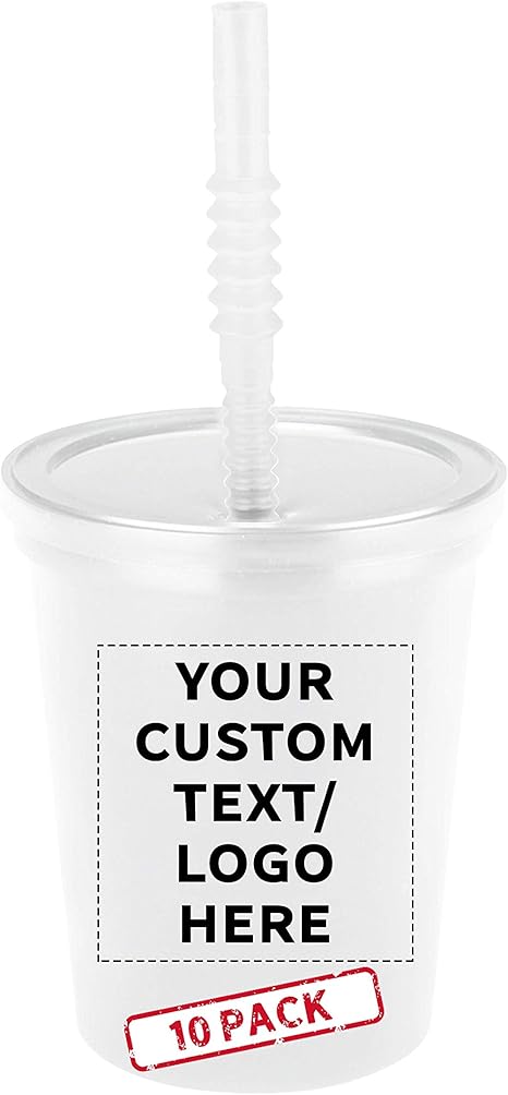 White plastic cups with lids and straws clearance, Plastic Stadium Cups with Lid and Straw clearance