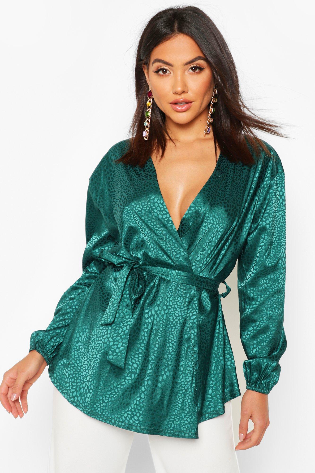 Satin wrap blouse clearance