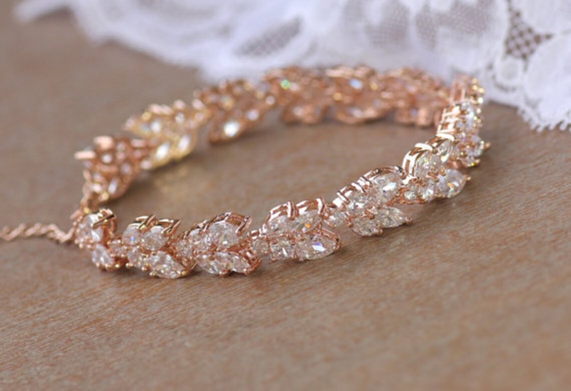 Rose gold crystal bracelet clearance, Rose Gold Crystal Bracelet Rose Gold Bridal Bracelet Crystal - Etsy clearance
