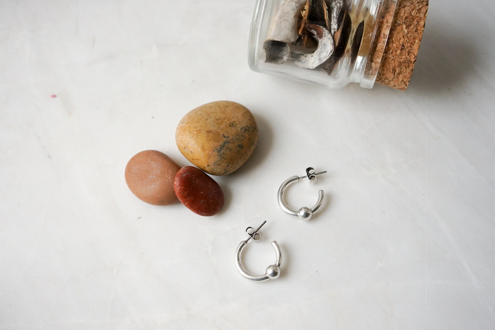 - Open hoop earrings with balls