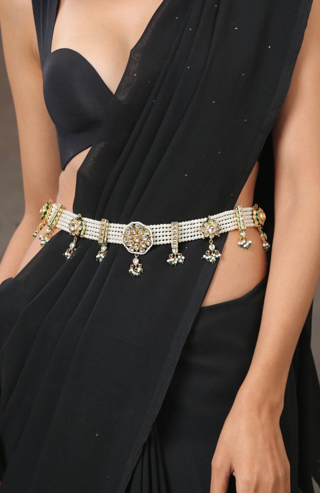 Kundan waist chain clearance, Kundan Kamarbandh Waist Chain Pearls Waist Chain Vaddanam | Etsy clearance