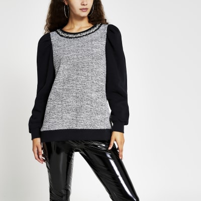 - River island black sweatshirt sale
