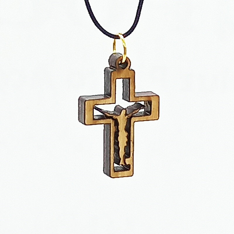 - Wooden jesus cross necklace