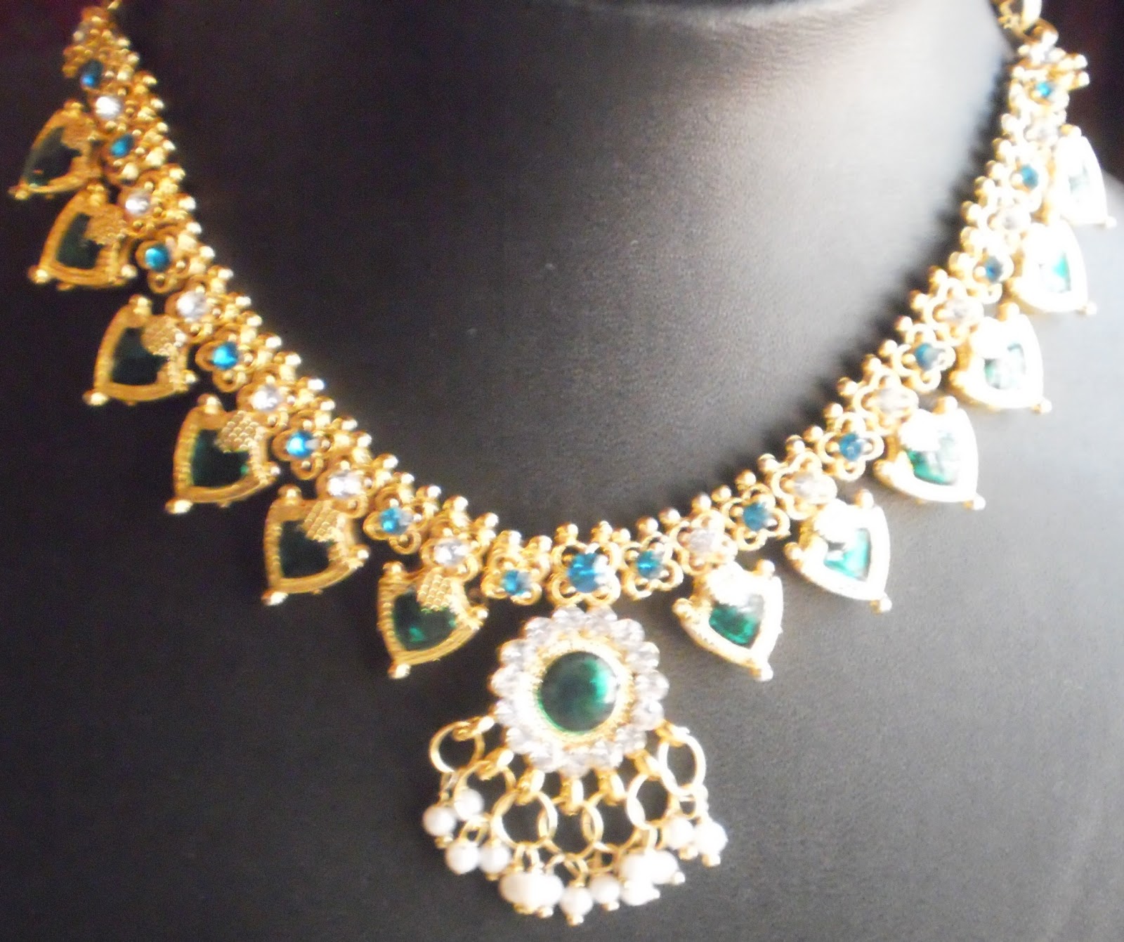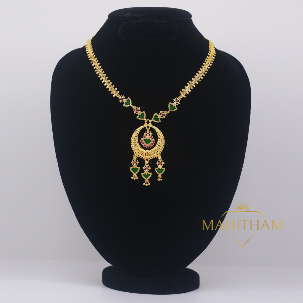 Palakka mala locket clearance, Designer Green Palakka Locket with Urvashi One Gram Gold Chain MG-1011 - Mahitham Jewellery clearance