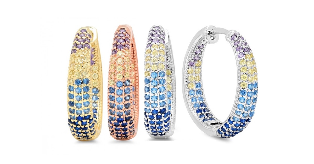 Gold hoops with diamond balls clearance, 18kt Gold Simulated Diamond Hoops - 4 Styles clearance