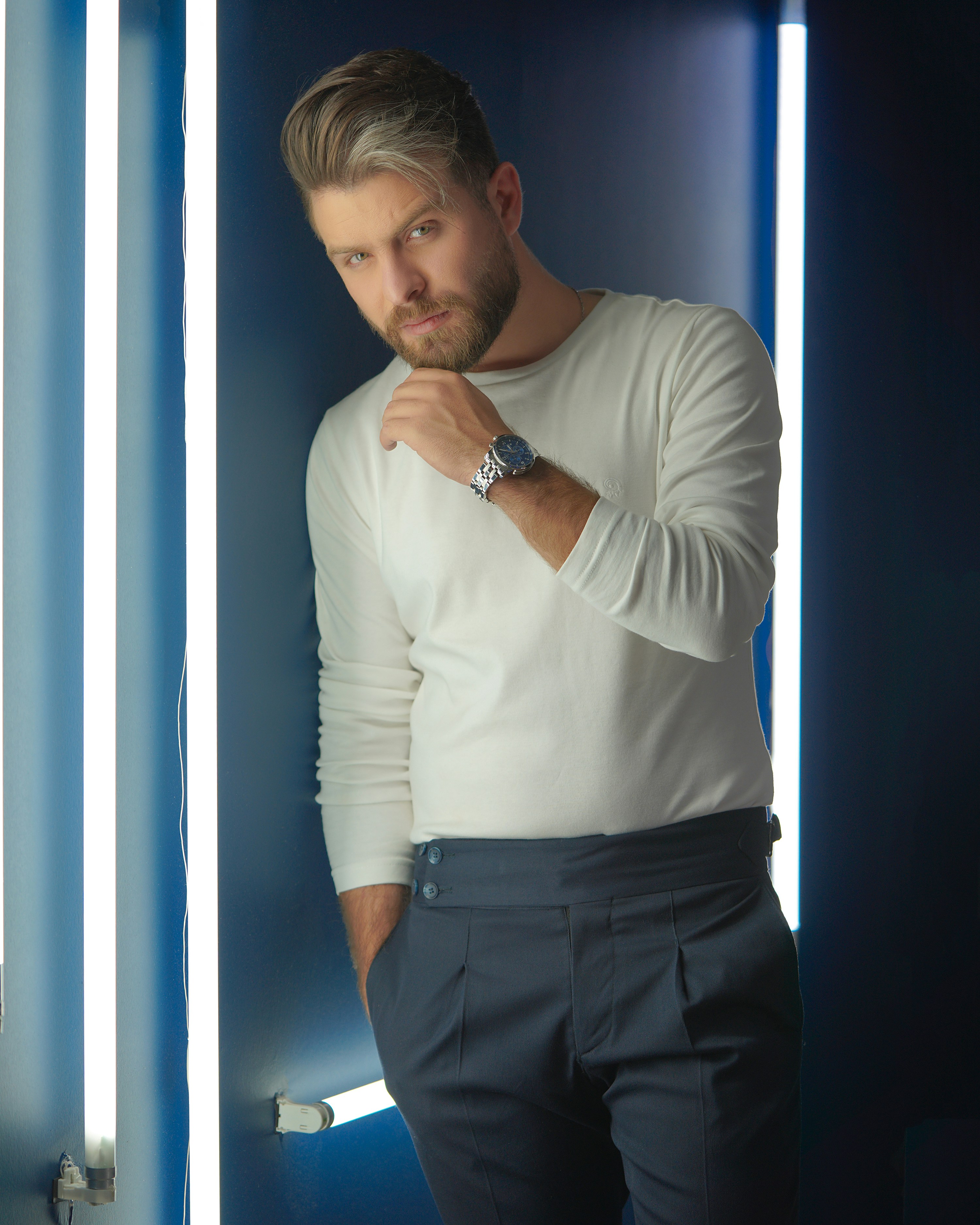- White long sleeve with black pants