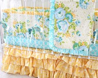 - Yellow floral crib bedding sale