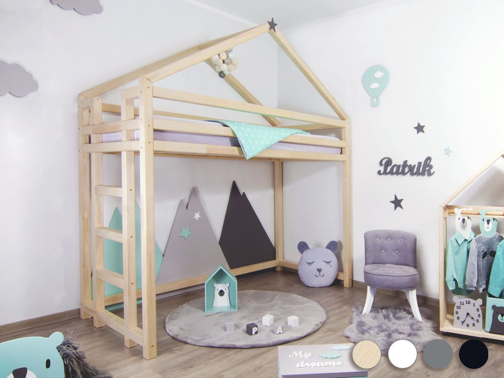 Wooden childrens bed clearance, Toppy“ children's solid, raised bed in clearance