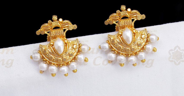 Thodu model gold clearance, White Stone Ear Studs Gold Model Traditional South Indian Thodu Collections ER21723 clearance