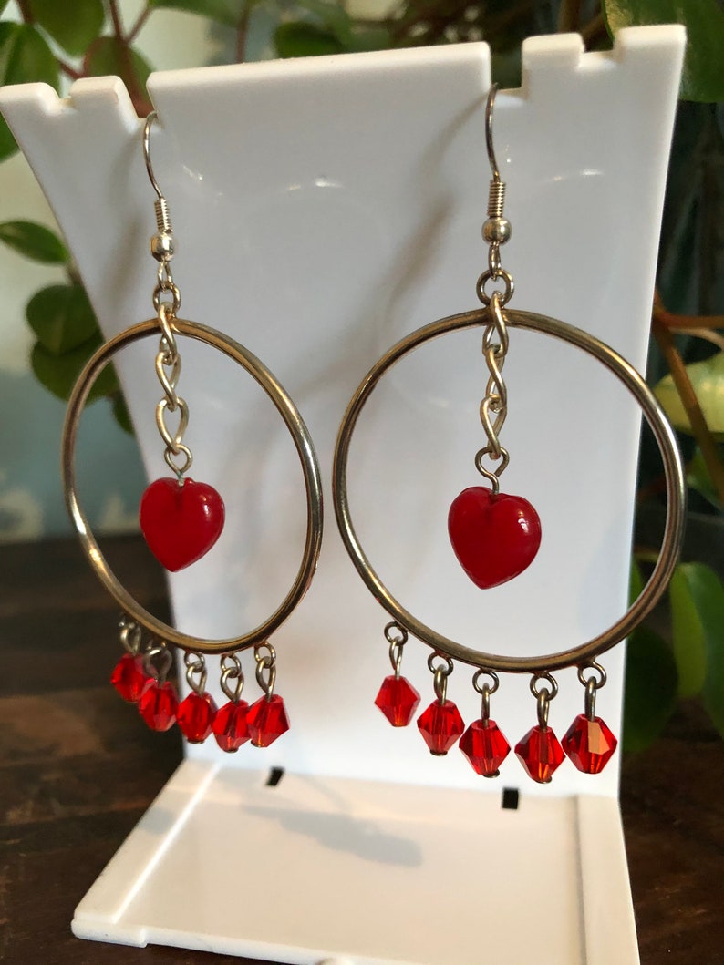 - Red heart hoop earrings outlet
