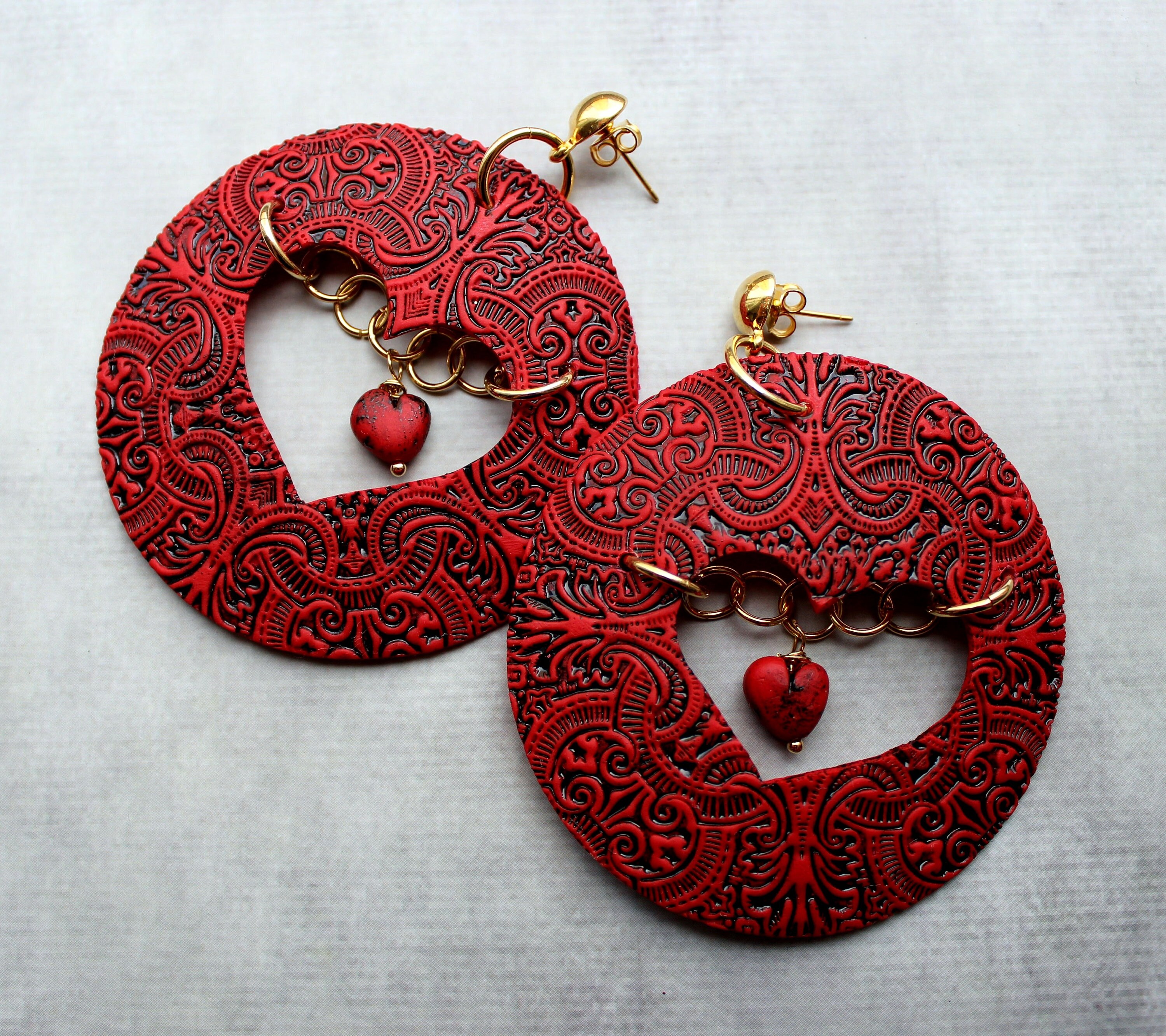 - Red heart hoop earrings clearance