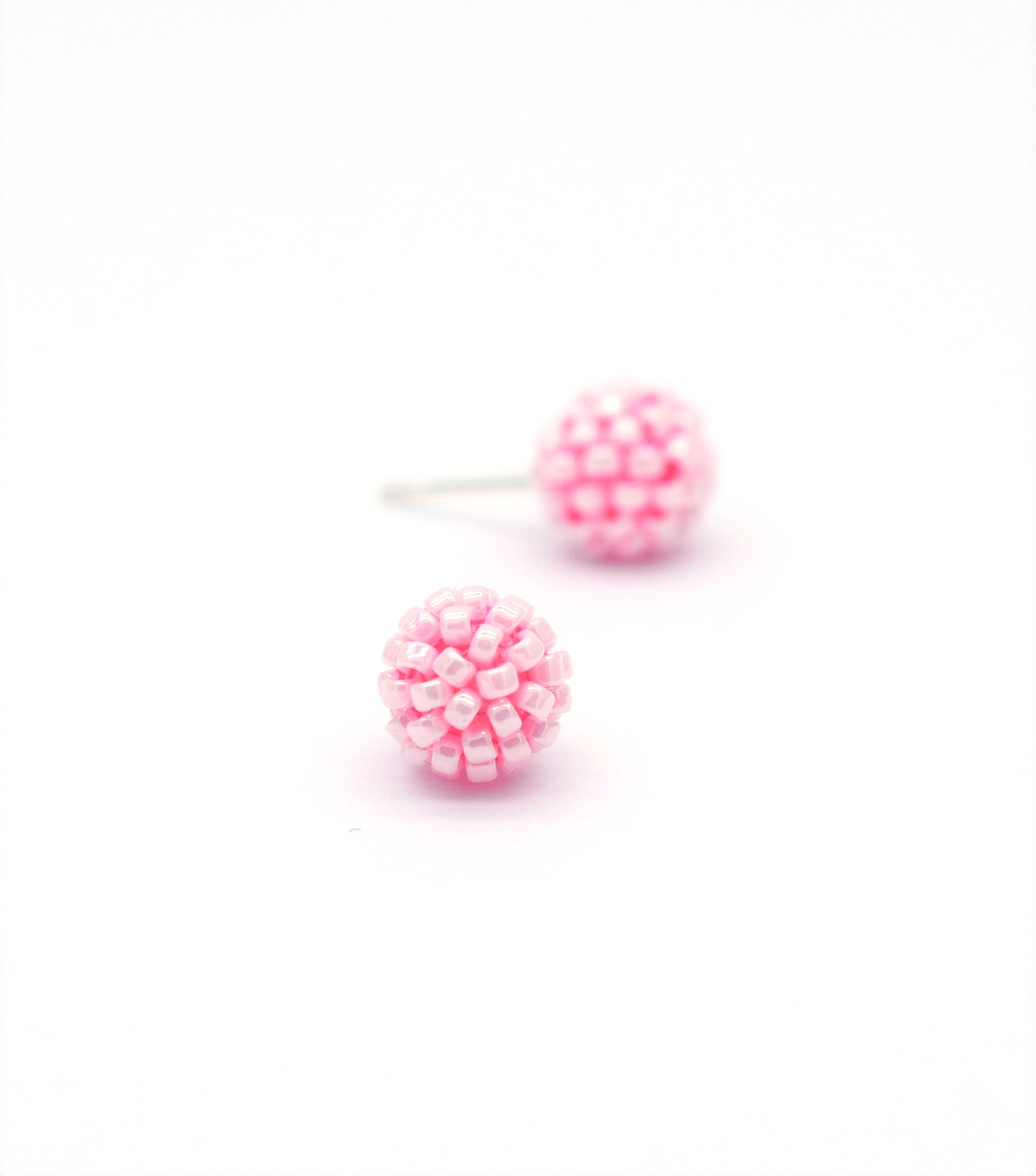 Pink ball earrings clearance