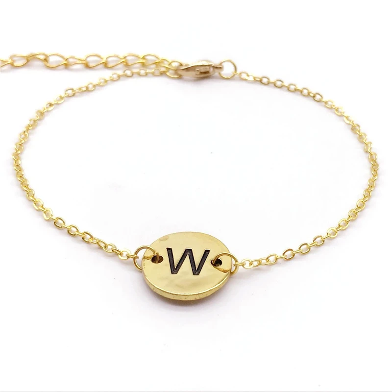 Alphabet bracelet gold clearance, 10pcs/lot Stunning Initial Alphabet Bracelet Disc Circle Letter Pendant Bracelet Gold Tone clearance