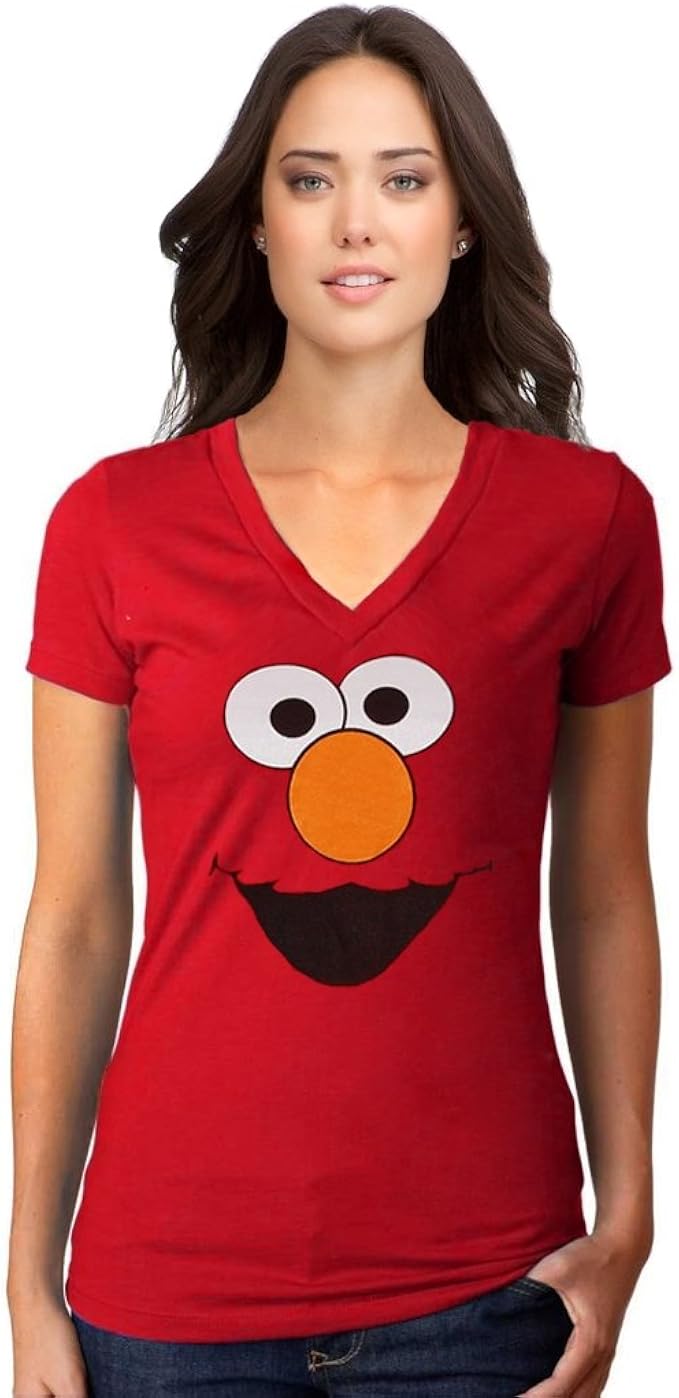 Women's sesame street shirt clearance, Womens Sesame Street Elmo Face V-Neck T clearance