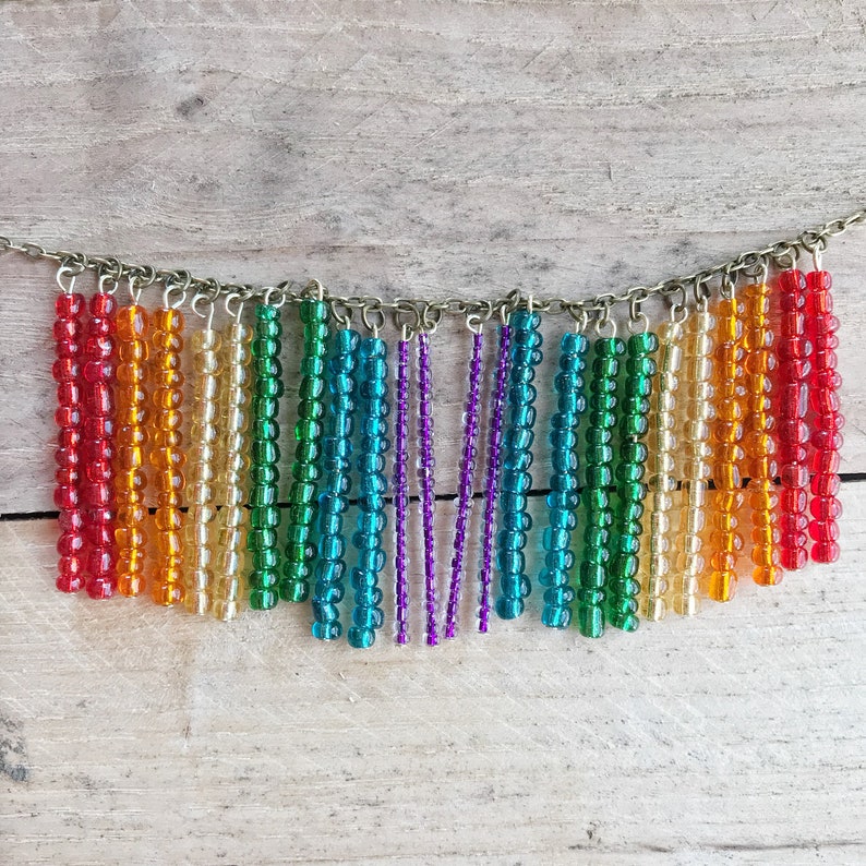 Rainbow glass necklace clearance, Rainbow Glass Necklace Beaded Rainbow Statement Necklace | Etsy clearance