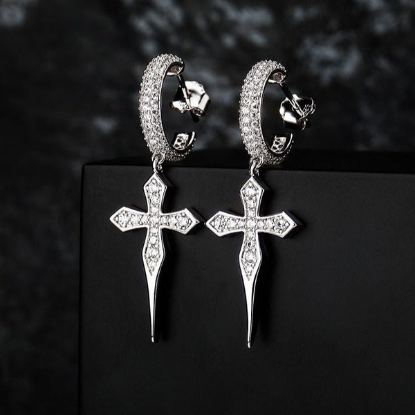- White gold cross hoop earrings outlet