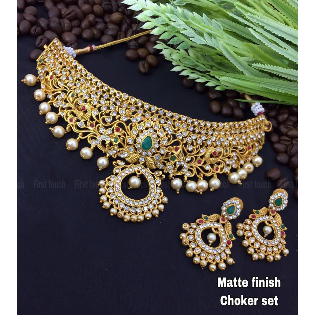 Matt choker clearance, Indian Antique matt finish choker multi color | Shopee Malaysia clearance