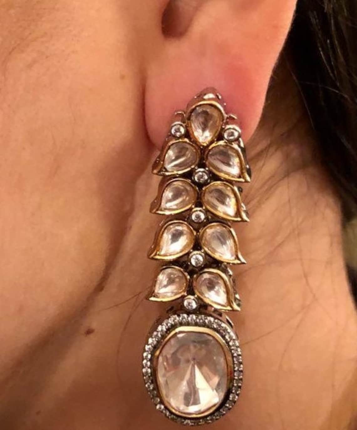 Kundan long earrings clearance