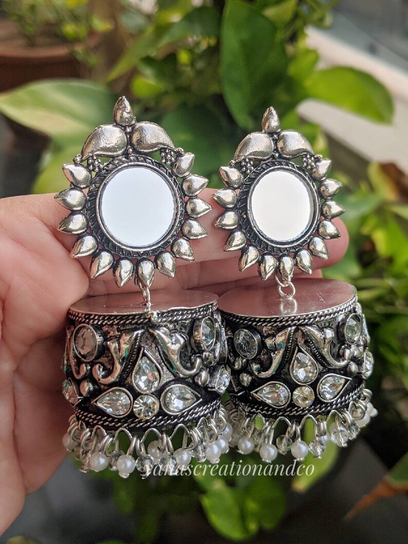 German silver earrings jhumkas clearance