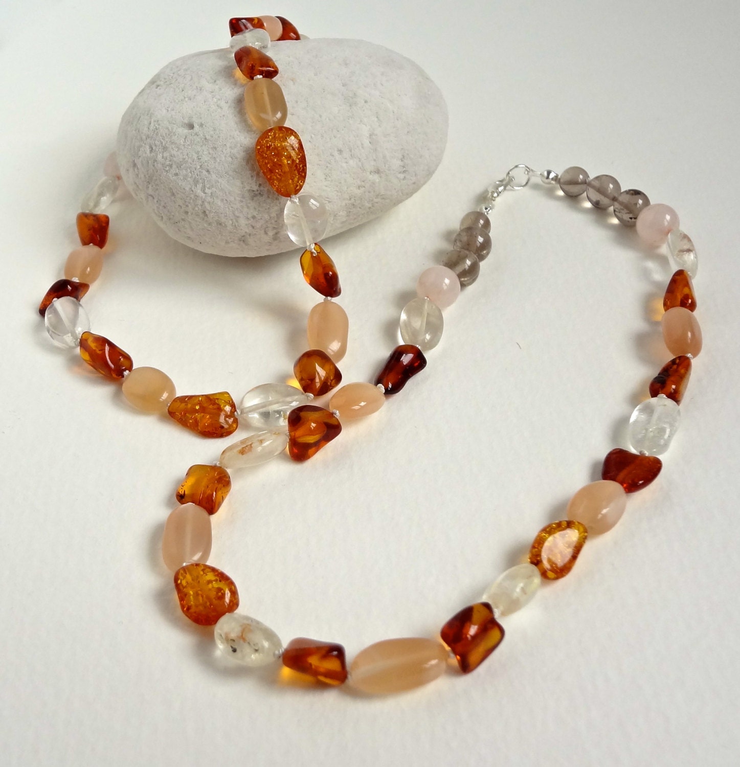 Crystal teething necklace clearance, Teething Necklace with Baltic Amber and Healing Crystals clearance
