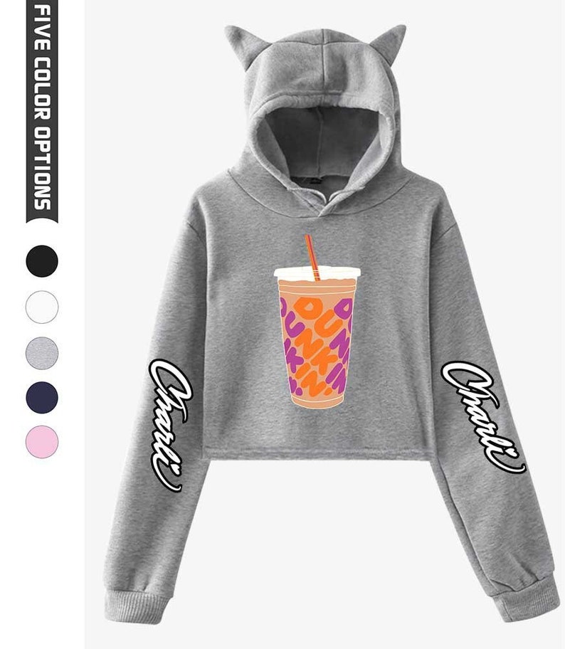 Dunkin donuts hoodie charli damelio clearance, Charli D'amelio Crop Top Hoodie Iced Coffee Dunkin' - Etsy clearance